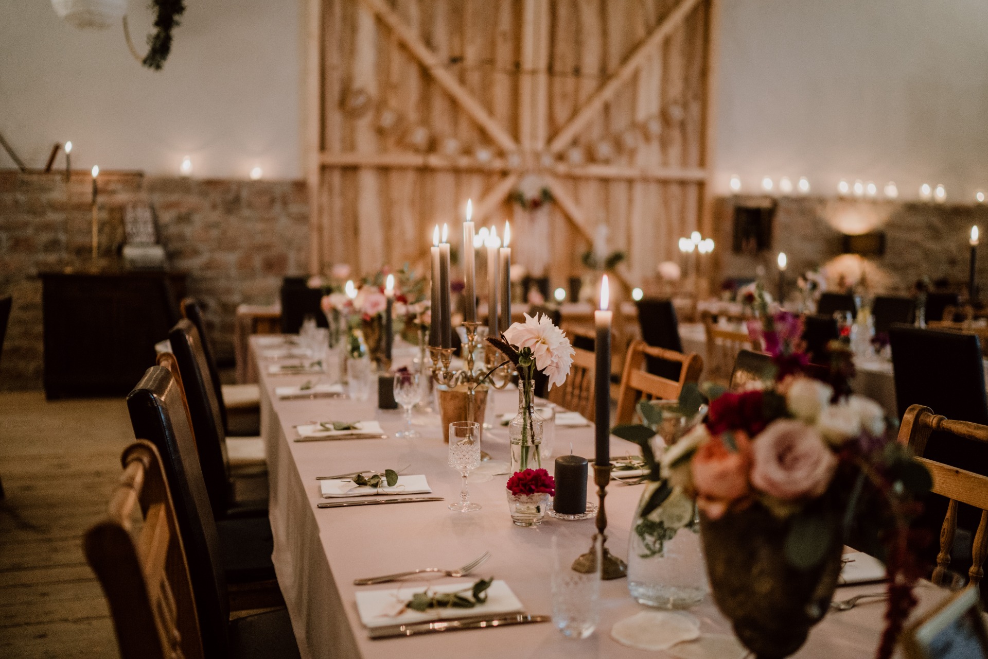 In der Eventscheune mit großer Bar, hohen Decken und Dielenboden finden bis zu 140 Personen bestuhlt oder 350 Personen stehend Platz. In Kombination mit dem großen, verspielt mit Lichterketten dekorierten Innenhof finden sogar noch weit mehr Personen Platz. Besonders zu empfehlen ist auch das Kaminzimmer mit eigenem Bar- und Buffetraum, das sich vor allem für kleinere Veranstaltungen im gemütlichen Rahmen von bis zu 45 Personen bestuhlt oder 80 Personen stehend anbietet. Ebenso lässt es sich aber auch als loungige Erweiterung der Eventscheune und des Innenhofs nutzen. Als besonderes Highlight bietet der Marienhof eine eigene Trauscheune, in der sich Hochzeitspaare im Beisein von bis zu 80 Personen vor einem freien Trauredner das "Ja"-Wort geben können. Sie haben noch keinen Trauredner? Kein Problem! Fragen Sie einfach unser HOCHGEFÜHL-Team!